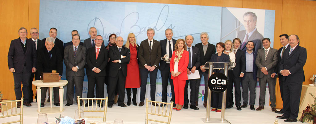 Alfonso Rueda felicitou ao homenaxeado e desexoulle novos éxitos na súa carreira xornalística para seguir aportando novos e acreditados puntos de vista sobre o devir diario e a súa repercusión na sociedade galega desde a práctica dun periodismo veraz e independente.