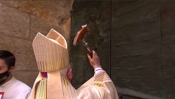 El arzobispo de Santiago de Compostela, monseñor Julián Barrio, abrió en la tarde del jueves la Puerta Santa de la Catedral compostelana, dando así comienzo al Año Jubilar Jacobeo de 2021, un “tiempo de gracia y de bendición” para la Iglesia que peregrina en Compostela y para toda la Iglesia. “Ya ha comenzado el Año Santo”, dijo el arzobispo, “en unas circunstancias especiales que hemos de afrontar con la esperanza cristiana que “es audaz y sabe mirar más allá de la comodidad personal de las pequeñas seguridades y compensaciones que acortan el horizonte para abrirse a grandes ideales que hacen la vida más digna”. Monseñor Barrio, en una ceremonia litúrgica plena de simbolismo, indicó en su homilía que “la Casa del Señor Santiago abre sus puertas a todas las gentes” y que “el Año Santo no es una huida espiritualista sino un compromiso para discernir cristianamente la realidad, en medio de la crisis antropológica, espiritual, cultural y sanitaria en la que se han visto radicalmente sacudidas las certezas fundamentales que conforman la vida de los seres humanos. Hacer presente a Dios es un bien para la sociedad”. En su homilía agradeció también el mensaje del Papa Francisco.