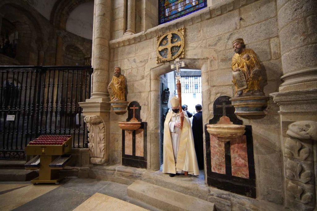 Con la presencia del Nuncio de Su Santidad, monseñor Bernardito Auza, la del cardenal emérito de la capital española, monseñor Antonio María Rouco Varela, así como la de los obispos de la Provincia Eclesiástica de Santiago, además de otros arzobispos y obispos, entre ellos el ex auxiliar de Santiago y actual titular de la Diócesis de Astorga, monseñor Jesús Fernández González, el arzobispo de Santiago procedió ayer a la apertura de la Puerta Santa. Tras la procesión ceremonial, monseñor Barrio golpeó con un martillo la Puerta Santa para entrar en la Basílica compostelana y presidir en el Altar Mayor la Eucaristía.