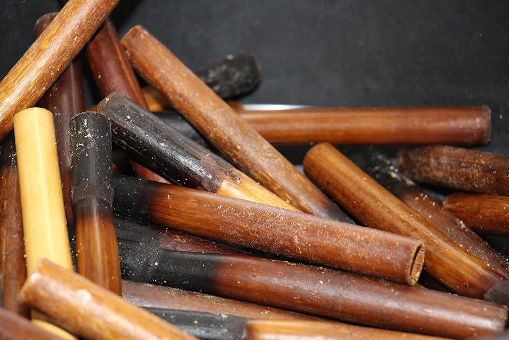 bambú por sus rugosidades), a modo de molde. Se reservan y más tarde van a la