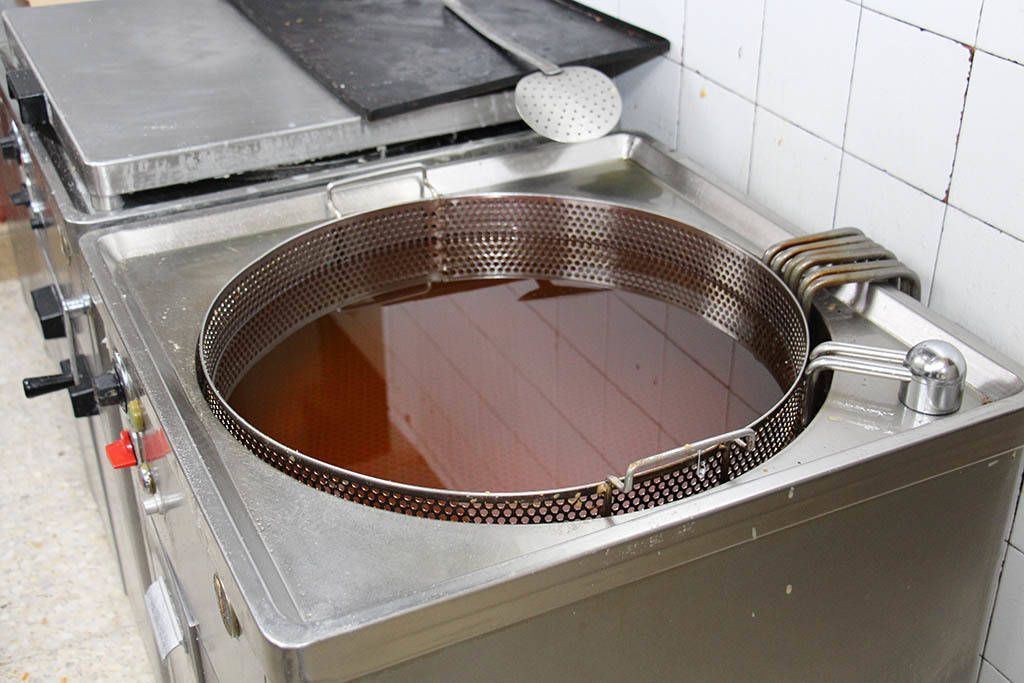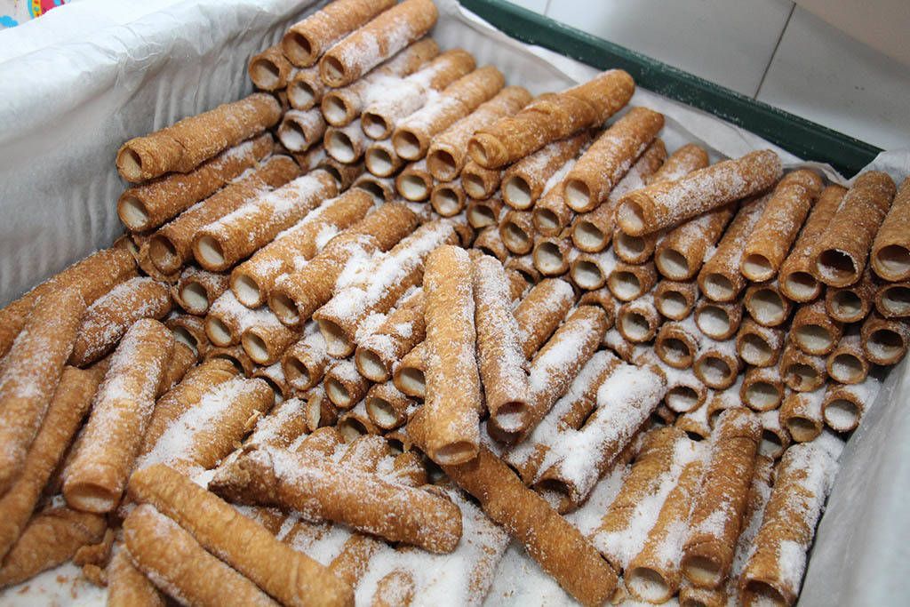 freidora. Al salir se les quita la caña-molde antes de que enfríen y se peguen.