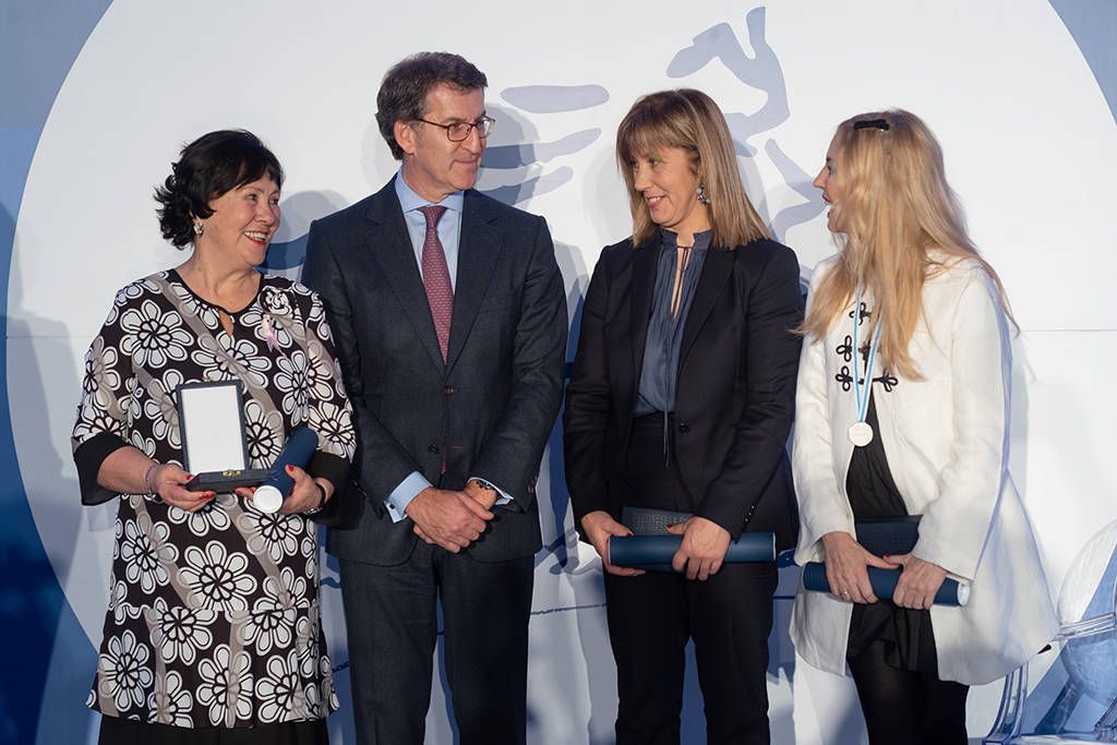 Al hilo de esto, resaltó que en estas medallas están mujeres que representan a la Galicia que se escribe en femenino plural y singular: “La labor de Olga Sotelo, presidenta de la Asociación de diagnosticadas y diagnosticados de cáncer de mama, se define con palabras como apoyo, comprensión, solidaridad y diálogo”, resaltó, refiriéndose también al grupo de gallegas que decidieron bautizarse como Mulleres de seu”, para hacer visibles los avances en igualdad en el rural. Una iniciativa, cuya alma es la vicepresidenta de Cooperativas Lácteas Unidas, Carmen Rodríguez, y que demuestra que no solo en la Galicia urbana se produjo una evolución en la situación y consideración de las mujeres.