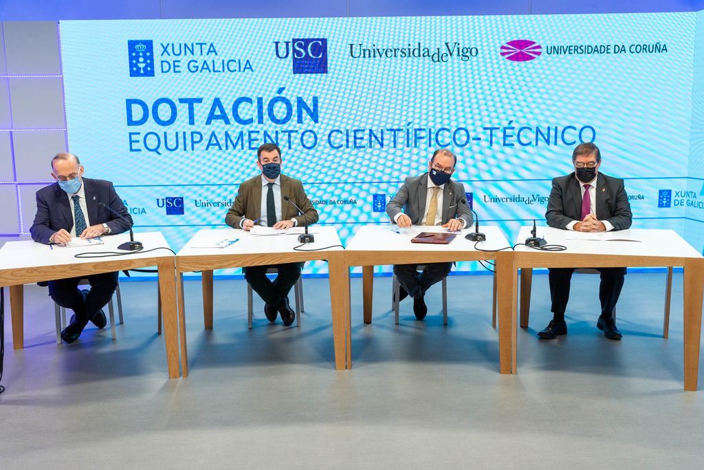 La Xunta y las tres universidades públicas del Sistema Universitario Gallego acaban de sellar un acuerdo de colaboración a través del cual el Gobierno gallego inyecta cerca de 7M€ para la adquisición y mejora de equipación e instalaciones científico-técnicas para sus campus durante este año 2021.