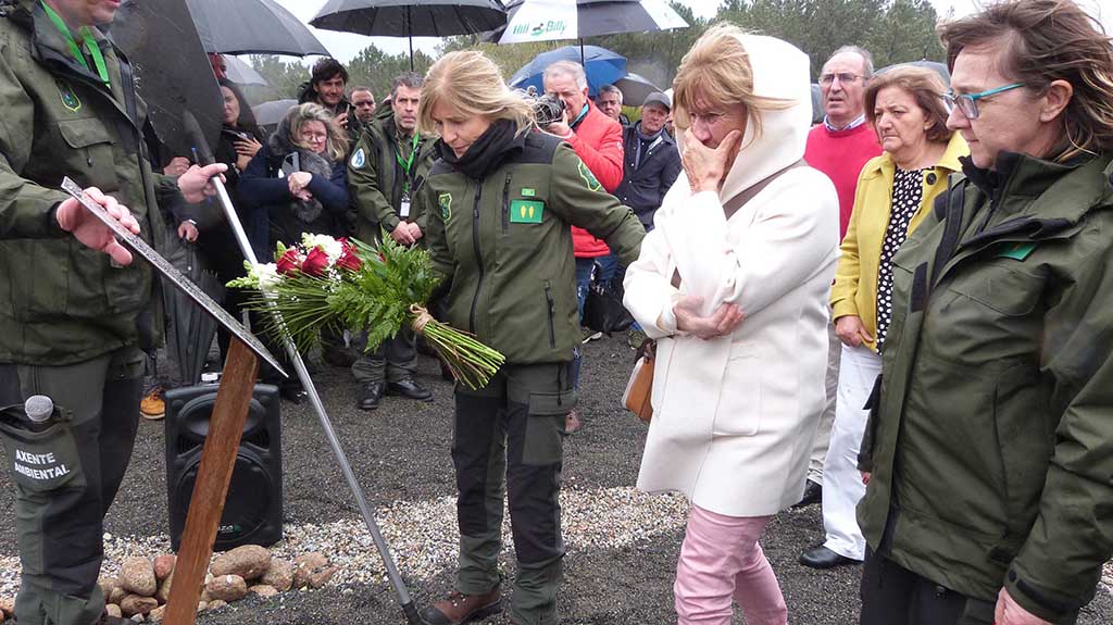 O director xeral de Defensa do Monte, Manuel Rodríguez, moi emocionado, lembrouse de moitos compañeiros que xa non están. “Me acordaba de Abraham Lincoln que, en 1863, dijo que él no era quien para consagrar ningún cementerio porque la tierra ya está consagrada por la sangre de los que han allí habían dado la vida. Nuestra gente, nuestras familias han consagrado ya esta tierra, pero Galicia tiene una deuda de reconocimiento para todos ellos y nosotros, una deuda de recuerdo. Recordar que nadie está muerto del todo mientras alguien le recuerde. Y ésa es nuestra deuda. Nunca olvidemos los nombres de todos los que han muerto sirviendo a Galicia y al rural. Ese es el mayor homenaje que podemos hacer aquí”, demandou, antes de ler os nomes de varias vítimas mortais: Santiago Durán Alzugaray, Higinio Vivas López, Maximiliano Plaza Bretón, Jorge Manuel Santana Jardim, Íñigo Zubiaga, Rodrigo Amo González, Julio Martínez Silva, Antonio Díaz Díaz y Tomás Scodeller García. “Honor a quien honor merece”, finalizó Manuel Rodríguez.