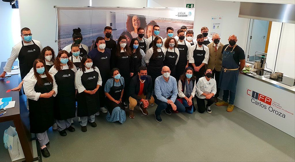 Precisamente, fue el gerente de Galicia Calidade, Alfonso Cabaleiro, el que presentó a la cocinera gallega, que también cuenta con el distintivo gallego en su establecimiento, situado en Palas de Rei (Lugo). Durante su intervención, Alfonso Cabaleiro agradeció la buena receptividad del centro al Aula Gastronómico y se mostró convencido de que esta experiencia contribuirá a dar a conocer las características de los productos y marcas entre los futuros cocineros y cocineras de Galicia. “Estoy seguro de que esta experiencia contribuirá a que nos conozcan mejor y también a que saquen el mayor partido posible a nuestros productos y marcas”, afirmó.