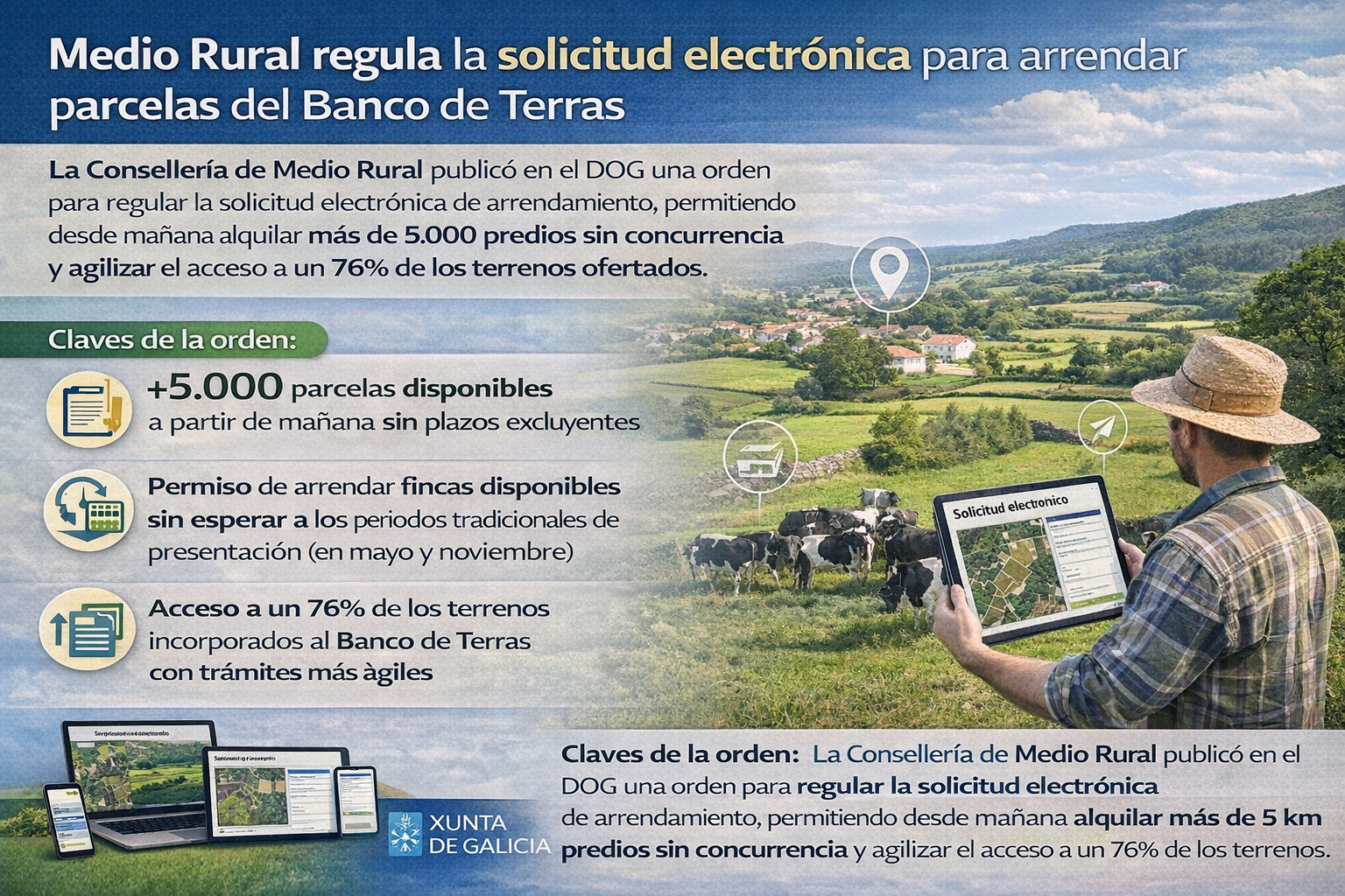 Medio Rural impulsa el arrendamiento electrónico de parcelas del Banco de Terras Infografía DL-G. DL-G 12 de febrero de 2026 (16:01 h.) Leer más Etiquetas Medio Rural