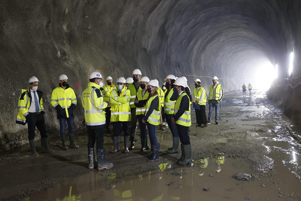 Rosa Quintana, que estivo acompañada pola delegada territorial da Xunta en Ferrol, Martina Aneiros, e pola presidenta de Portos de Galicia, Susana Lenguas, congratulouse porque a escavación do túnel do acceso ferroviario que une Caneliñas e A Graña xa estea practicamente rematado. As dúas bocas desta infraestrutura, de máis de 5.500 metros de lonxitude, xa están conectadas e só queda pendente a súa adecuación, impermeabilización e revestimento.