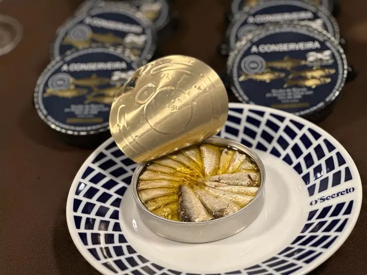La empresa A Conserveira presentó en primicia este jueves en A Coruña la primera conserva que llega al mercado con el prestigioso sello de calidad Xouba de Rianxo-Pesca Artesanal Arte do Xeito. Es una delicatessen de producción limitada, numerada y con la exclusividad de los productos de alta calidad.