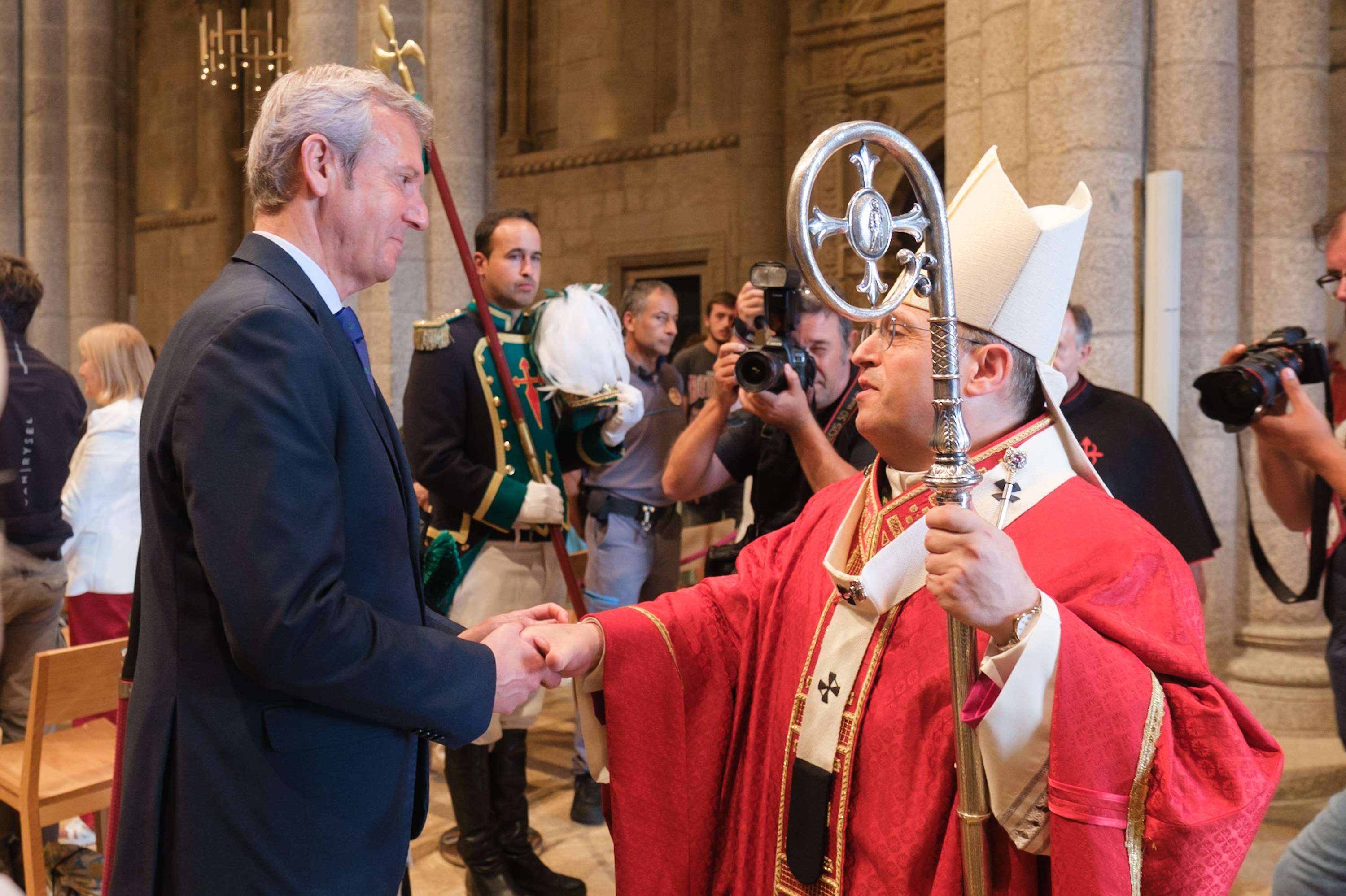 Ao igual que o peso de calquera responsabilidade, a que supón debutar como delegado rexio nesta celebración é máis liviá cando é compartida. Esta é tamén a primeira ofrenda que preside o arcebispo Francisco José Prieto, ao que quero agradecer a súa cálida acollida nesta Catedral e desexarlle a maior das sortes no seu desempeño.