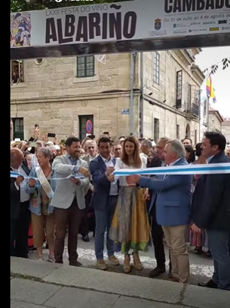 La conselleira do Medio Rural, María José Gómez, junto al delegado territorial de la Xunta en Pontevedra, Agustín Reguera, protagonizó hoy el pregón inaugural de la LXXII Festa do Viño Albariño en Cambados. El Gobierno gallego reafirmó su compromiso con el sector vitivinícola, destacando su relevancia económica, territorial y turística.