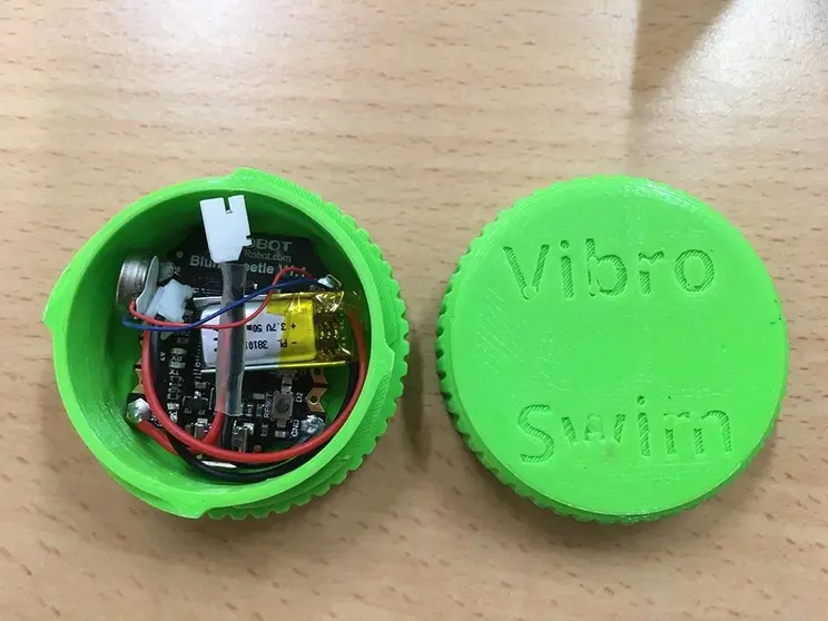 O primeiro premio recaeu no proxecto “VibroSwim” de Pablo Pedrosa e Guillermo Giacone, do CPR Las Acacias-Montecastelo de Vigo. Os rapaces sinalan que o seu invento “serve para asistir a nadadores profesionais con cegueira total, axudándolles a coñecer os límites da psicina". Explican que “estes deportistas non poden nadar de forma autónoma. Cando o nadador chega ao final da rúa debe ser avisado polo seu adestrador cun stick. Pensamos nunha solución máis complexa, precisa e automática, é dicir, sen necesidade doutra persoa. Para iso creamos un sistema de aviso totalmente automatizado, empregando un sensores que miden a velocidade de aproximación ás paredes da piscina, e que avisa cando o nadador debe iniciar a manobra de viraxe sen chocar coa parede. A orde envíase mediante bluetooth a un microcontrolador situado debaixo do gorro do nadador”. Este primeiro premio, dotado con 1.000 euros, permitiralles financiar a súa participación na maior feira científica a nivel estatal, Exporecerca, que se celebra anualmente en Barcelona.