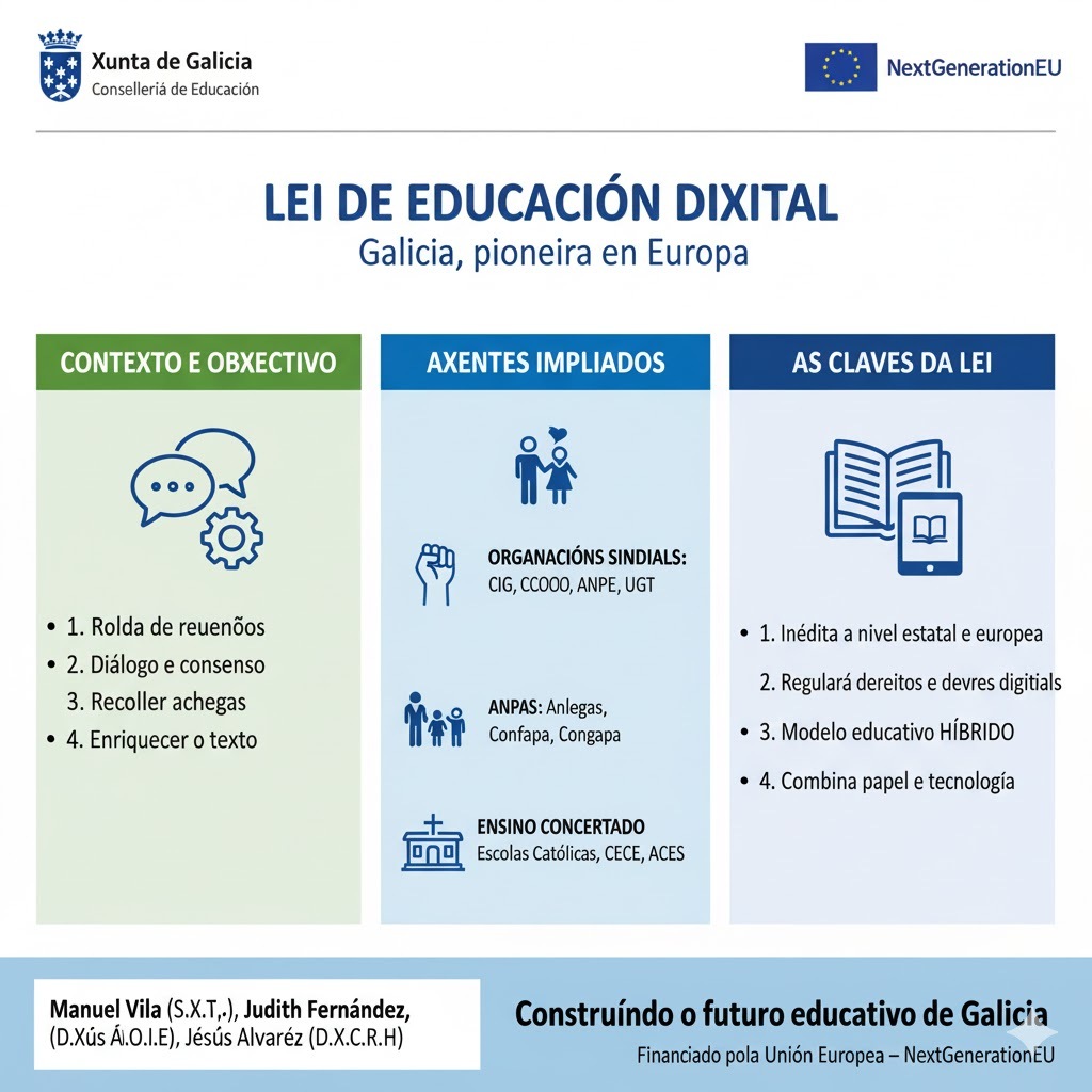 A Xunta avanza na Lei de Educación Dixital coa achega de sindicatos, ANPAS e ensino concertado