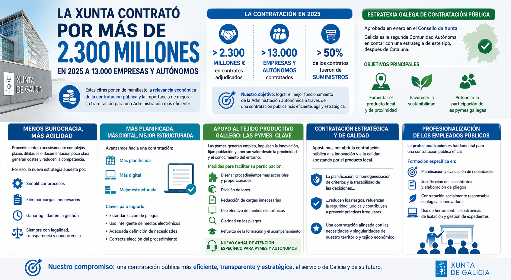 La Xunta contrató por más de 2.300 millones en 2025 a 13.000 empresas y autónomos