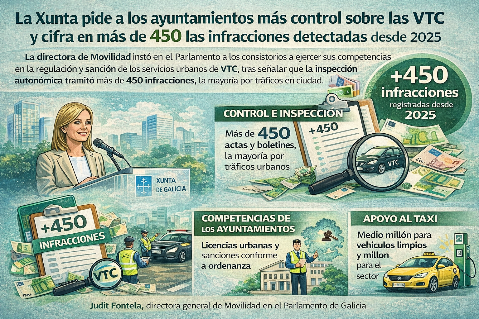 La Xunta pide a los ayuntamientos más control sobre las VTC y cifra en más de 450 las infracciones detectadas desde 2025
