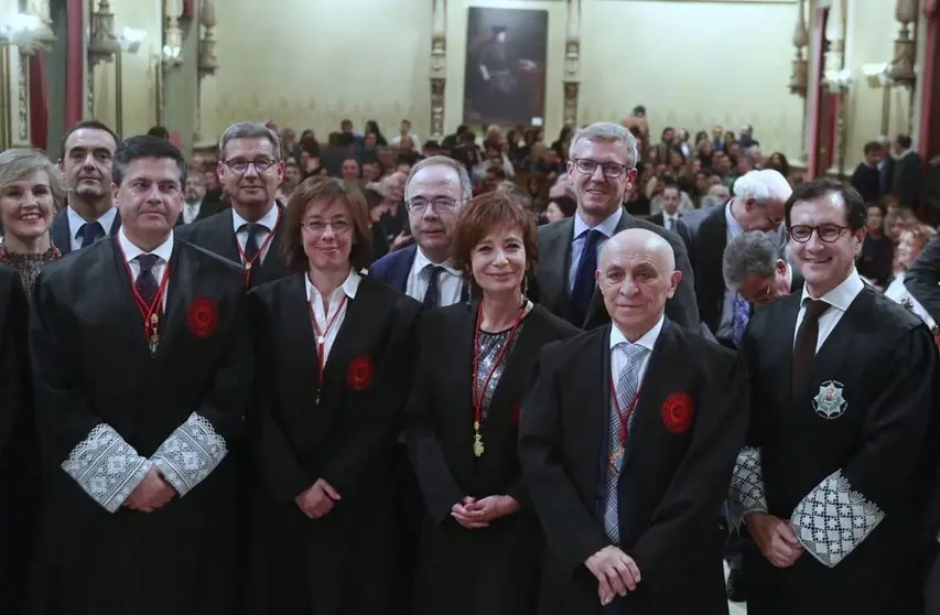 El vicepresidente de la Xunta, Alfonso Rueda, acompañado por el director general de Justicia, Juan José Martín, y por el delegado territorial de la Xunta en A Coruña, Ovidio Rodeiro, asistió hoy al acto de conmemoración del 175 aniversario del Colegio de Abogados de Santiago.