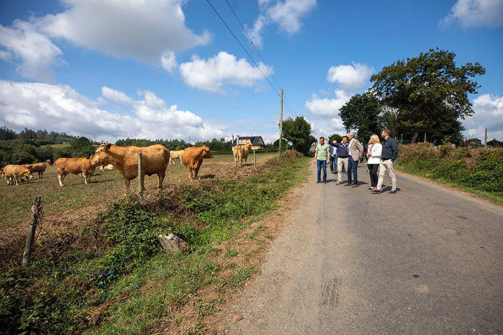 En una visita a una explotación de vacuno de carne en Trazo, Rueda explicó que este nuevo apoyo, esperado por los productores, se activa en mitad de una notable subida de los costes para un sector que es una fuente de empleo y actividad en el rural.