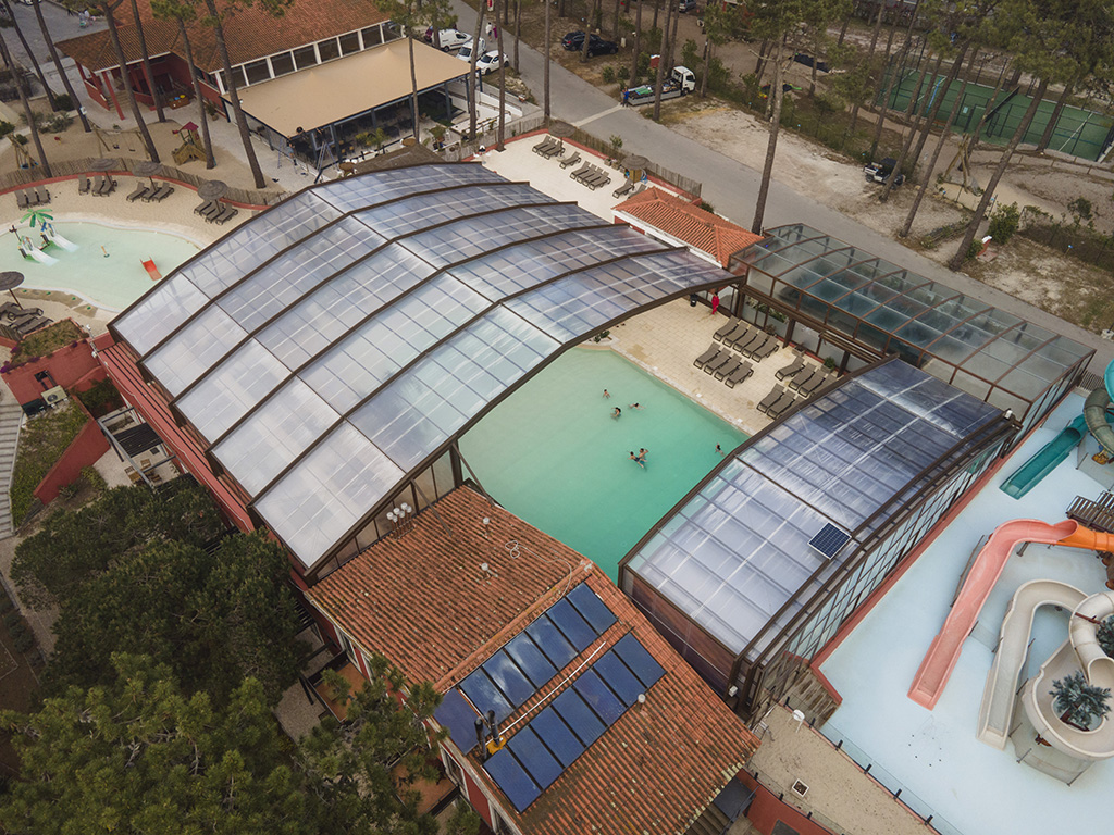 Se trata de una estructura de 45 metros de largo y 31,5 de ancho, también diseñada y fabricada por la compañía santiaguesa, que cubre una piscina de grandes dimensiones en el Ohai Nazaré Resort, un glamping (camping con glamour) de la localidad portuguesa de Nazaré.