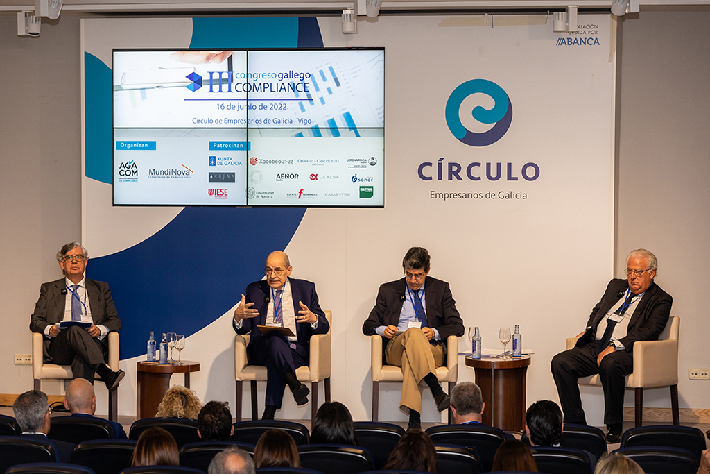 Teniendo en cuenta esta premisa, en el III Congreso Gallego de Compliance han participado como ponentes profesionales de referencia pertenecientes al entorno jurídico, académico, empresarial, de la administración y de la comunicación como Javier Cremades, fundador y presidente del bufete Cremades & Calvo Sotelo y presidente de la World Jurist Association; Juan Luis Cebrián, presidente de honor del periódico El País y miembro de la Real Academia Española; Juan Manuel Vieites, presidente de la Confederación de Empresarios de Galicia; Ignacio López-Chaves, presidente de la Comisión Gallega de la Competencia; Carlos Sancho, director de la unidad docente de temas jurídicos del IESE; Mayrata Conesa, manager compliance de AENOR; Alonso Hurtado, socio de las áreas de IT, Risk & Compliance y Ciberseguridad de ECIJA; o Patricia Iglesias, asesora jurídica del Consello Galego de Contas; entre otros.