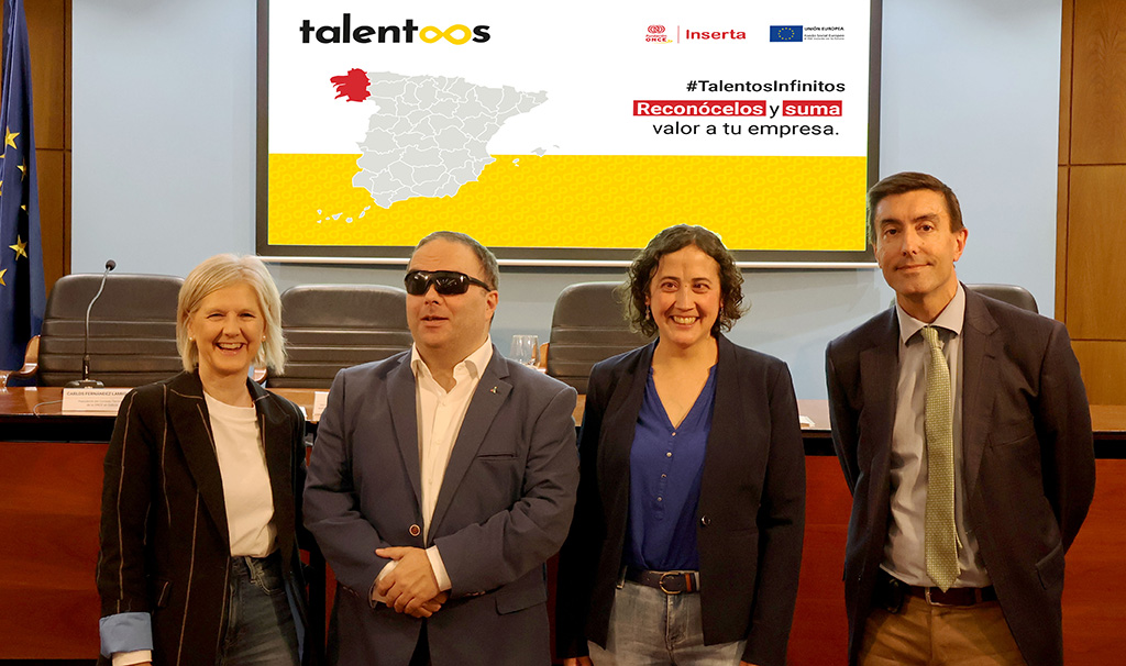 Inserta Empleo, la entidad de Fundación ONCE, para la formación y el empleo de las personas con discapacidad, ha presentado hoy en Galicia el programa Talentos, una campaña cofinanciada por el Fondo Social Europeo en el marco del Programa Operativo de Inclusión Social y de la Economía Social (Poises), que nace con el objetivo de dar visibilidad al talento no descubierto de las personas con discapacidad para fomentar su contratación.
