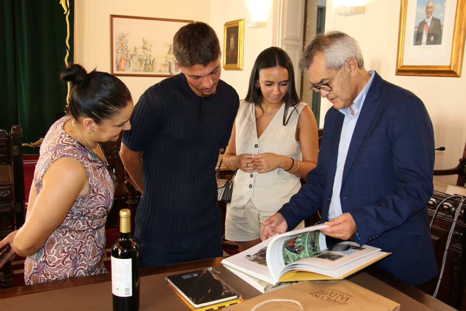 O Presidente da Câmara Municipal, Olegário Gonçalves, recebeu hoje nos Paços do Concelho o jovem futebolista Mathias de Amorim, uma das grandes revelações da última época da Liga Portugal Betclic. O atleta do FC Famalicão, que foi recentemente convocado para a Seleção Nacional Sub-21, tem as suas raízes familiares na freguesia de Sabadim.