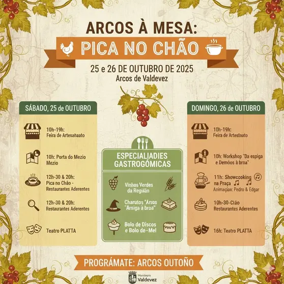 Los ciclos "Arcos à Mesa", promovidos por la autoridad local, tienen como objetivo valorar y divulgar las especialidades locales. El "Pica no Chão" se une a otros platos destacados como la Carne Cachena, el Cozido à Minhota, el Cabrito, los Rojões y las Papas de Sarrabulho.