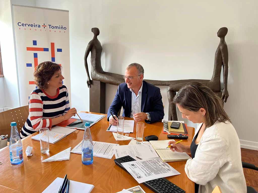 Rui Teixeira e Sandra Gonzalez elencaram ainda as diferentes ações conjuntas previstas para os próximos meses, nomeadamente a organização do Certame de Pintura António Fernández (20 de agosto); a apresentação d’ “O Rio Sereno”, um livro audiovisual interativo sobre o rio Minho, da autoria de Lucía Laín Claesson, com uma parte focada no território transfronteiriço em Vila Nova de Cerveira e Tomiño; e a apresentação do “O Camiño (da Nosa Señora) do Norte a Santiago”, de António Soliño Troncoso, manifestando o empenho da Eurocidade em pugnar pela respetiva certificação, fortalecendo a identidade transfronteiriça entre a Galiza e Portugal.
