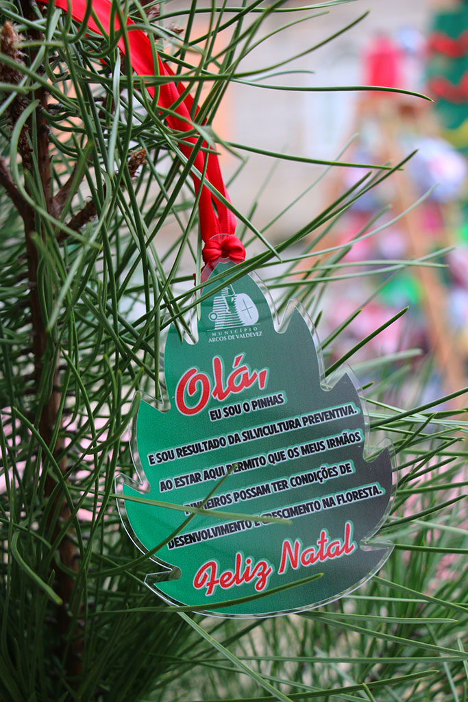 Estes pinheiros, oferecidos pelo Município e usados para a decoração de Natal, são selecionados pelos Sapadores Florestais, para realizar operações de silvicultura preventiva, proporcionando assim melhores condições de desenvolvimento às restantes árvores envolventes.