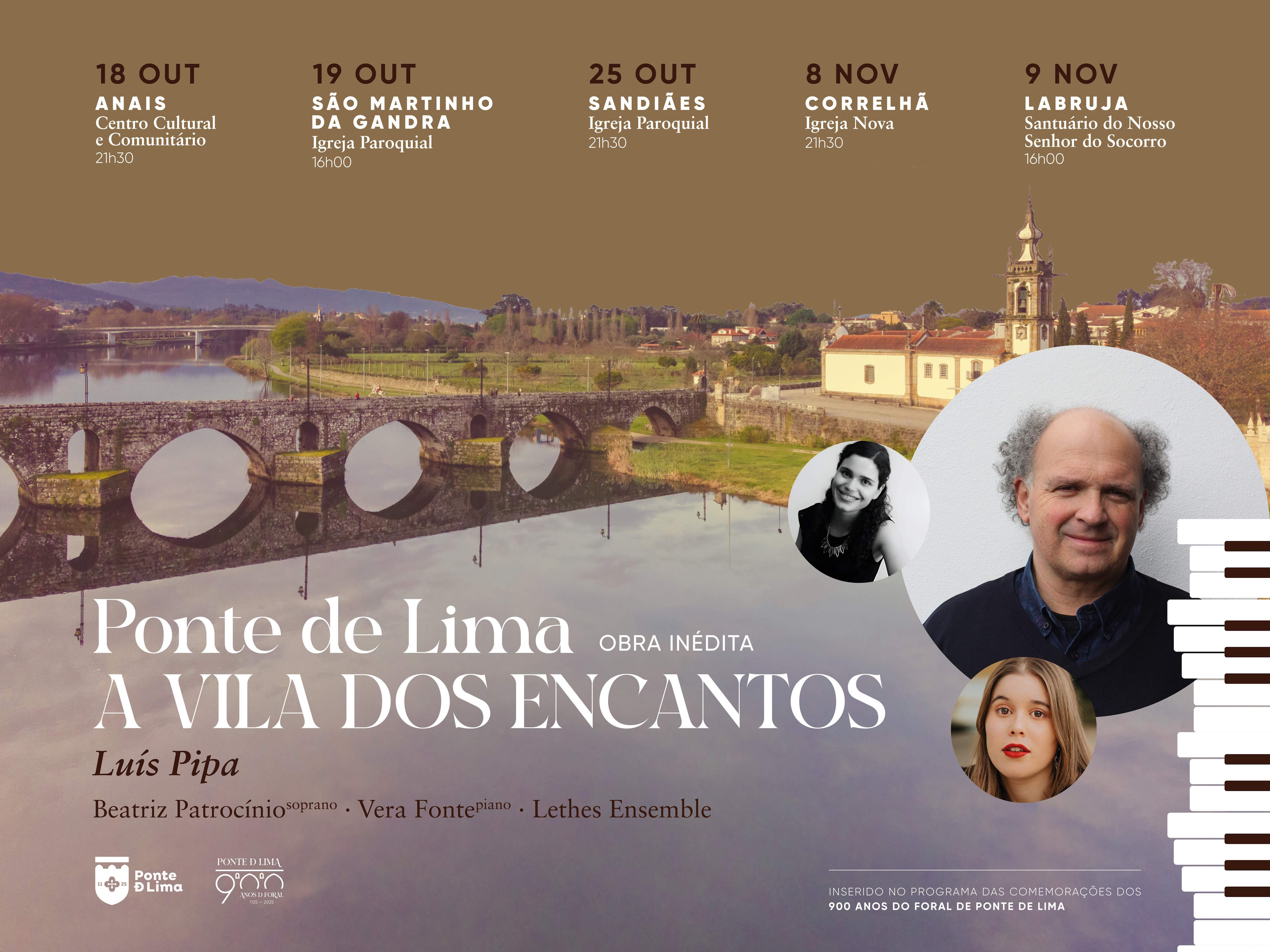 Ponte de Lima celebra o seu 900.º aniversário com uma série de concertos especiais que percorrem o concelho. O projeto "Ponte de Lima – A Vila dos Encantos" apresenta obras inéditas de Luís Pipa, num tributo musical à história e identidade limiana.