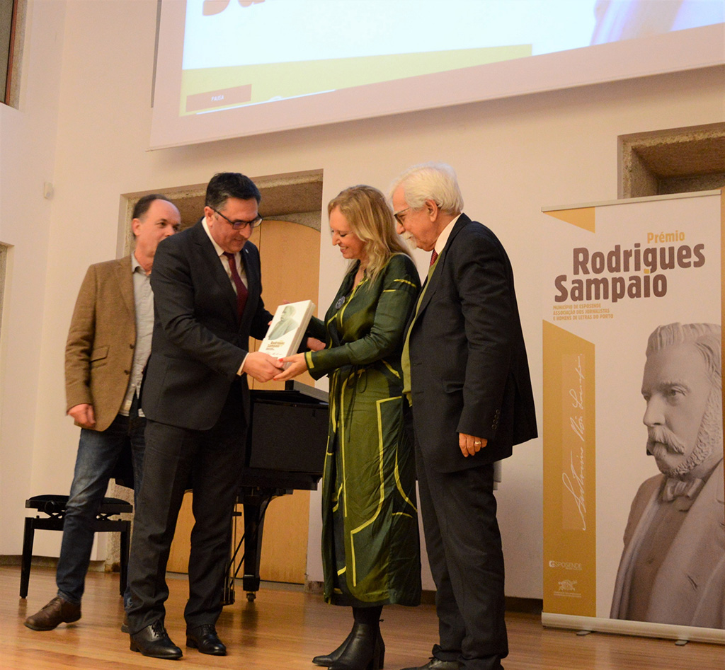 A cerimónia de entrega do Prémio Rodrigues Sampaio ao historiador António Borges Coelho. Instituído pela Associação dos Jornalistas e Homens de Letras do Porto e patrocinado pela Câmara Municipal de Esposende decorreu o dia 14, este galardão distingue personalidades que, pelo seu trabalho nas áreas da cultura e da comunicação social, contribuam para uma sociedade mais inclusiva e mais crítica. Devido a doença, foi a filha do galardoado, Sónia Borges Coelho quem recebeu o prémio.
