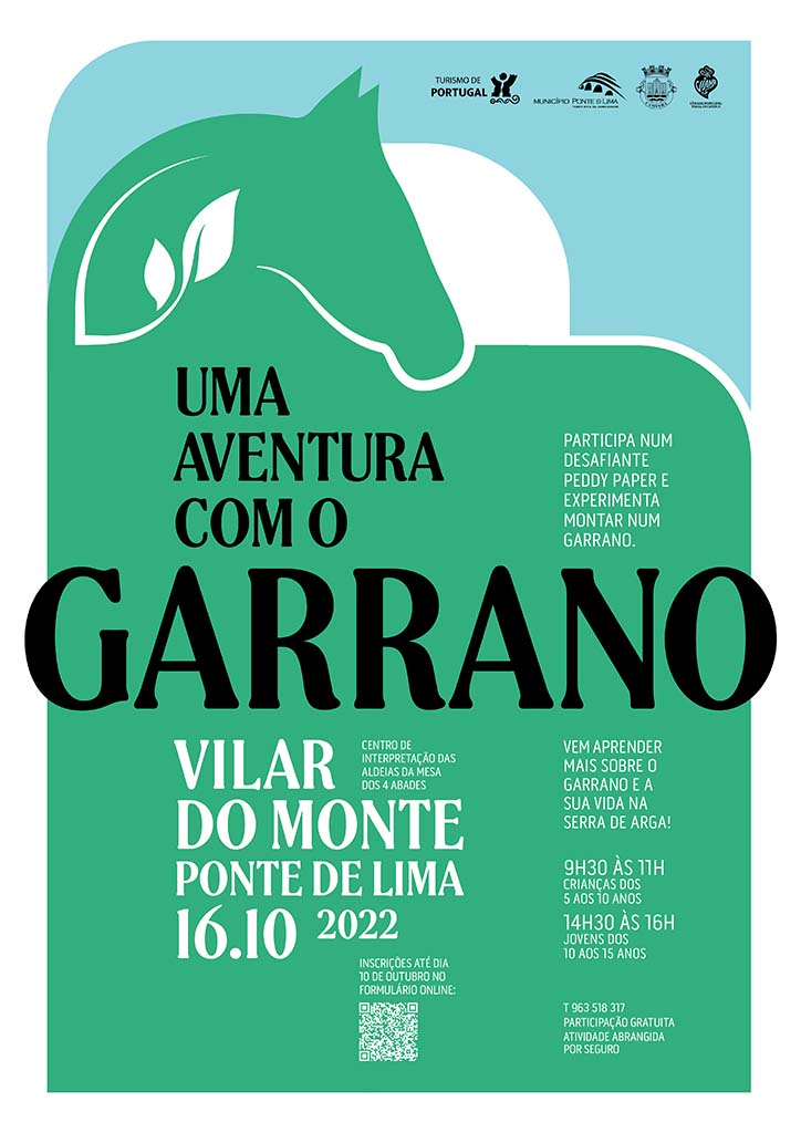 Se és apaixonado pela natureza e vibras com a descoberta, inscreve-te até ao dia 14 de outubro no formulário online: https://is.gd/av_garrano_Ponte_Lima. Se tens entre 5 e 10 anos de idade podes inscrever-te nos dois horários disponíveis da parte da manhã: 9h30 e 11h00. Se tens entre 10 e 15 anos de idade, inscreve-te num dos horários da parte da tarde: 14h30 e 16h00. Após receberes a confirmação da tua inscrição, temos encontro marcado junto ao Centro de Interpretação das Aldeias da Mesa dos 4 Abades!