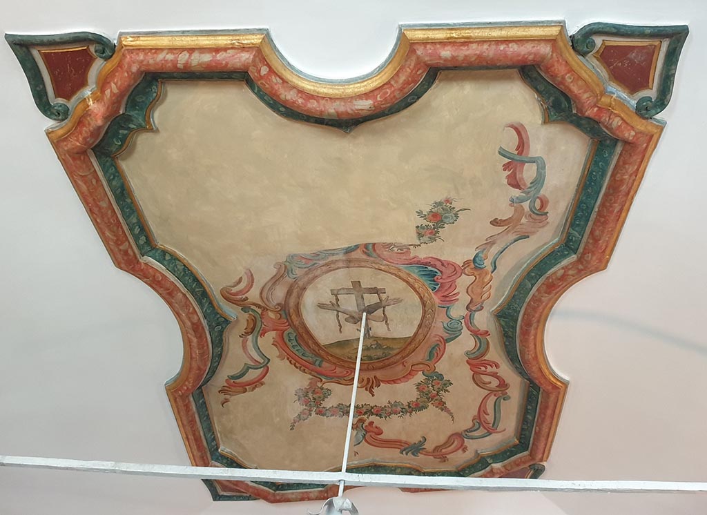 Terminou a operação de restauro do teto setecentista da Sala Consistorial, ou Sala de Reuniões, do edifício da Ordem Terceira de São Francisco. Parte do motivo central tinha cedido recentemente (imagens 01 e 02) e a intervenção consistiu na reposição e consolidação da pintura, assim como na restituição da coloração original do fundo (imagem 03), que se tinha perdido há muito mais tempo, em altura impossível de datar com precisão mas que deve remontar às primeiras décadas do Século XX.