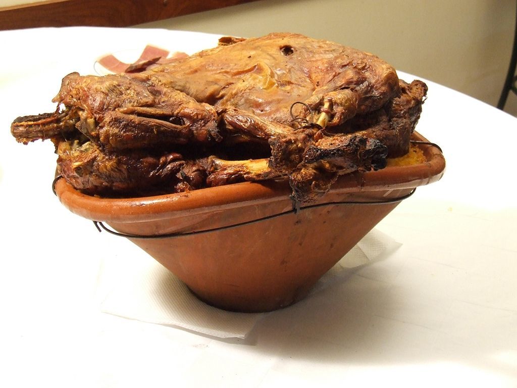 Se mezcla todo y se frota muy bien el cordero (que se debe colgar como se indicó anteriormente), por dentro y por fuera, este baño se repite 3 o 4 veces. Al día siguiente, abandona el lugar y lo coloca en una bandeja. Limpiarlo todo con un paño para quitar un poco de cebolla y el resto, de la salsa que suele estar dentro.