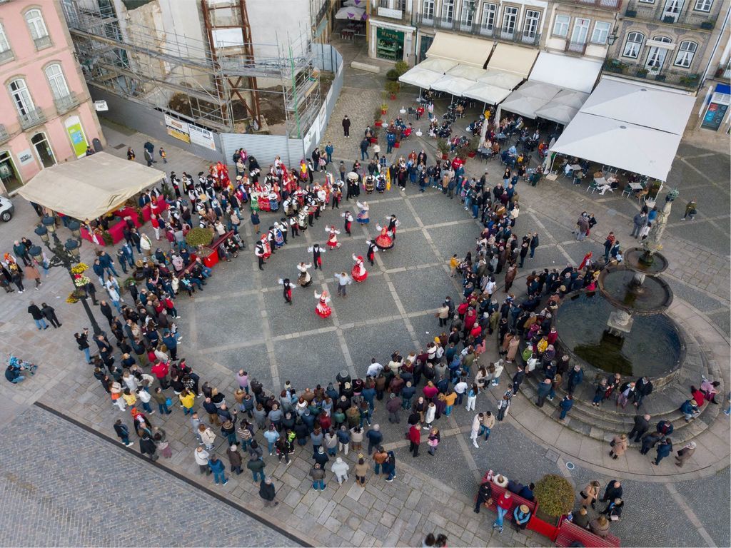 Os sons tradicionais acompanham as cores aguerridas dos trajes do Minho, num desfile típico, onde não faltam os sorrisos e a alegria do reencontro, da amizade, das largas centenas de pessoas que visitam a Vila Mais Antiga de Portugal.