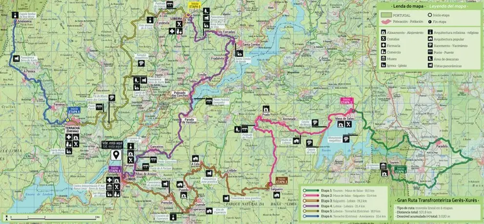 Os percursos pedestres em redor do rio Limia-Lima cobrem paisagens históricas em Espanha e Portugal. Mergulhe neles e desfrute de experiências únicas com visitas a casas senhoriais, vestígios romanos, parques naturais, reservatórios, praias fluviais e uma multiplicidade de jóias arquitectónicas espalhadas por vários municípios galegos e portugueses. Sem dúvida, a Grande Rota Transfronteiriça Gerês-Xurés é o protagonista. Tem 6 etapas de diferentes distâncias e desníveis, desde 10,6 km até ao mais longo de 21,4 km, e cobre diferentes áreas da área como Entrimo, Lobios, Lobeira e Salgueiro.