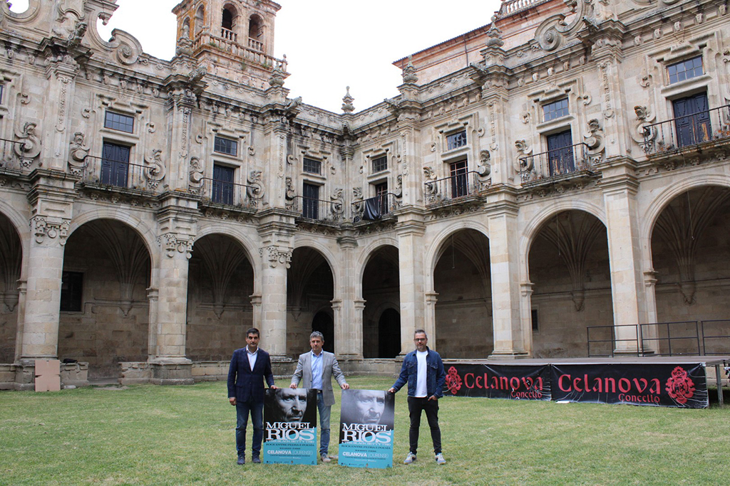 El delegado territorial de la Xunta en Ourense, Gabriel Alén, participó esta mañana, acompañado del alcalde, Antonio Puga, en la presentación del concierto de Miguel Ríos & The Black Betty Trio que se celebrará el 18 de agosto a las 21,00 horas en el Claustro del monasterio de San Salvador de Celanova. El precio de las entradas, que salen hoy a la venta en Ataquilla.com, será de 23 euros más gastos de gestión de la empresa distribuidora, y el aforo del mismo tendrá un máximo de 700 personas sentadas.