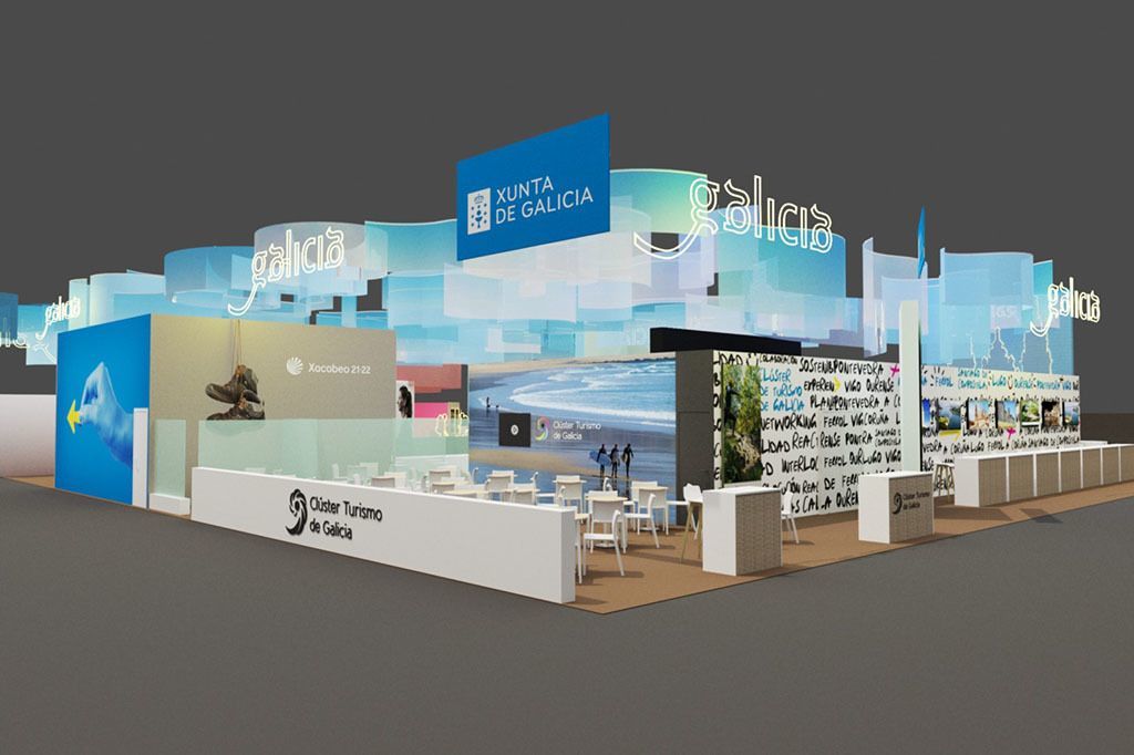 El stand con algo más de 1.000 m2 de superficie, fusionaba valores tradicionales y modernidad, una imagen de Galicia en constante transformación, por medio de un contraste armónico de colores, materiales e iluminación, simbolizando la ilusión con la que Galicia afrontaba el segundo año Xacobeo tras la pandemia. El eje de comunicación del stand, basado en la potenciación del Xacobeo 2021-2022, ensalzaba esta marca y la magnitud de la conmemoración de esta celebración a través de la internacionalidad del Camino de Santiago, así como la difusión de la oferta general de Galicia alrededor del Año Santo.