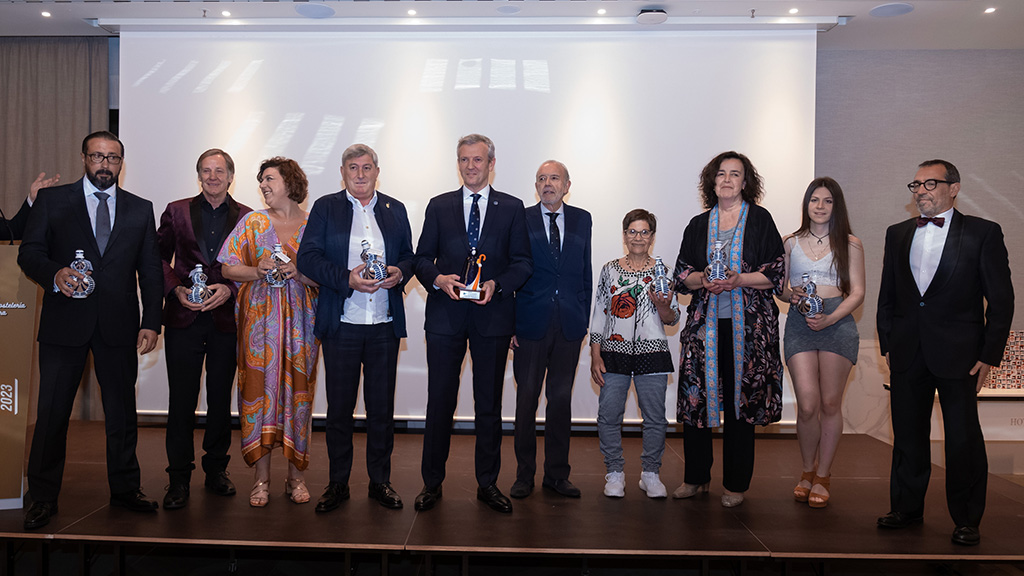 Alfonso Rueda felicitó a todos los premiados, a los que reconoció su esfuerzo y profesionalidad en unos tiempos muy difíciles, e hizo extensivo a todo el sector el premio dedicado al Xacobeo por su implicación en la promoción del Año Santo y en la acogida a peregrinos y turistas.