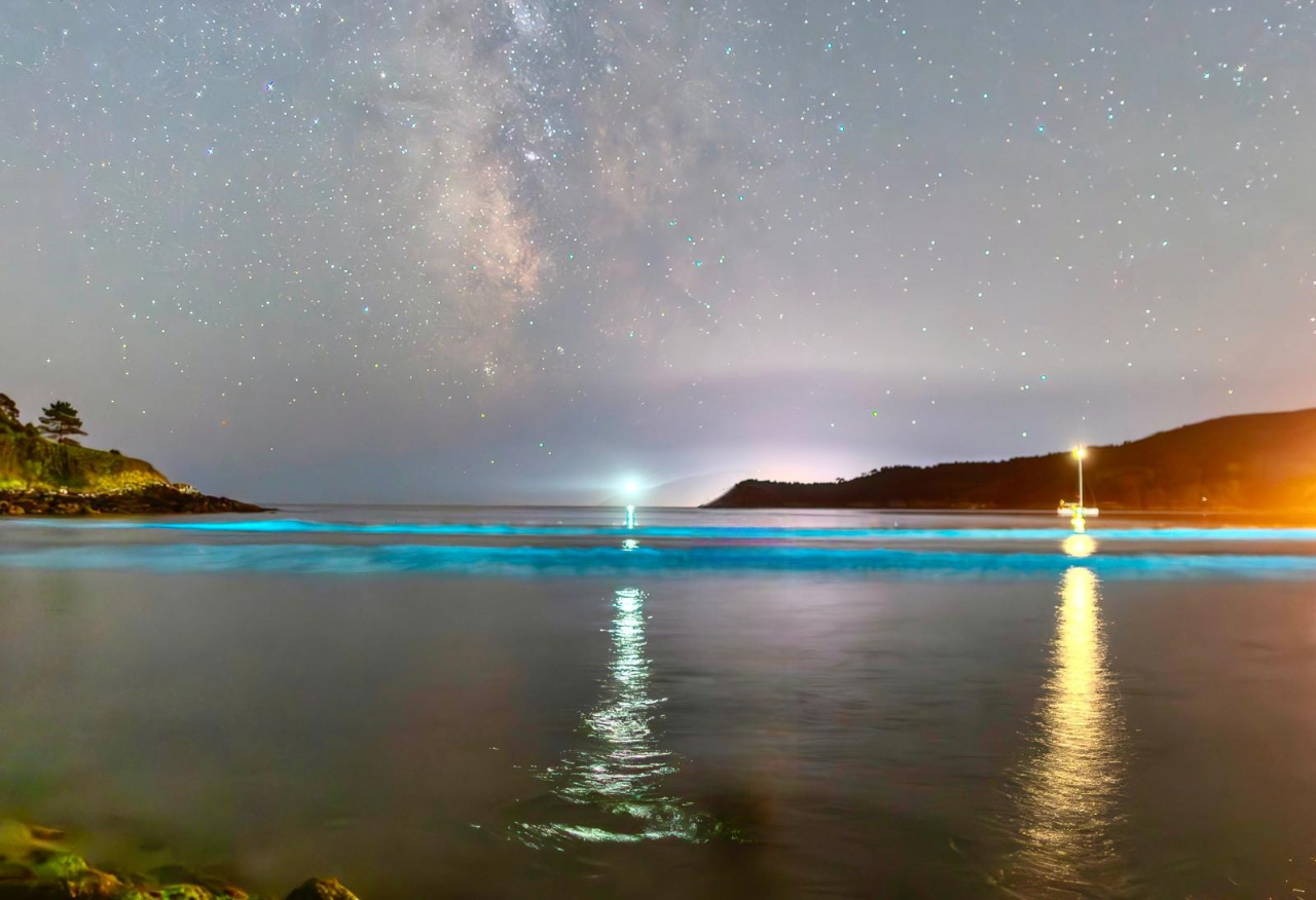 Este espectáculo de la naturaleza, que tiene su pico de aparición en agosto y se extiende durante los meses de primavera y verano, se debe a la acumulación de noctiluca. Estos diminutos organismos marinos se alimentan de las microalgas que proliferan con el aumento de las temperaturas del agua, especialmente favorecido por los vientos del sur o del este. Lo fascinante es que la noctiluca tiene la capacidad de emitir bioluminiscencia, un efecto similar al de las luciérnagas, pero a una escala oceánica.