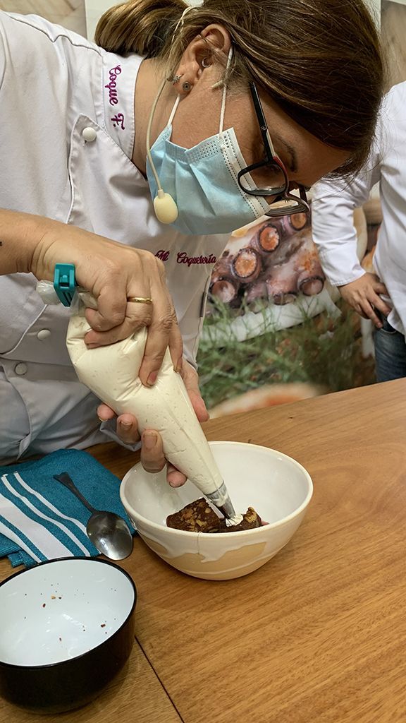 Fariña sorprendió a los asistentes con un brownie elaborado a base de chocolate, aguacate y plátano, ingredientes que, tal y como explicó, potencian el sabor del chocolate.