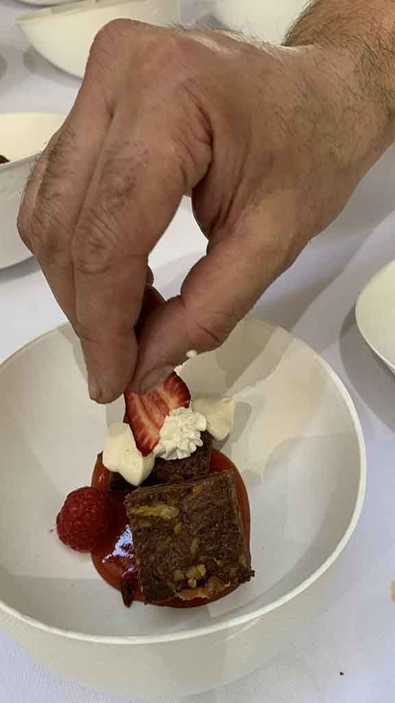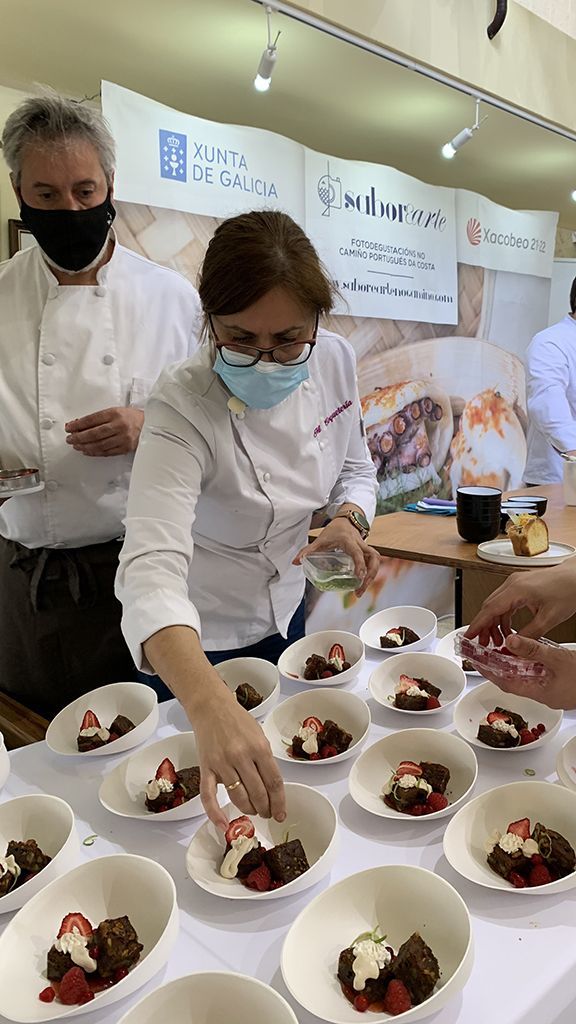 La chef Coque Fariña fue la encargada de cerrar el showcooking, aportando el toque dulce. Su plato, ‘Brownie bicolor con crema de café y leche condensada’, miró hacia la fábrica Nestlé ubicada en el municipio, una de las principales exportadores de leche condensada a todo el mundo.