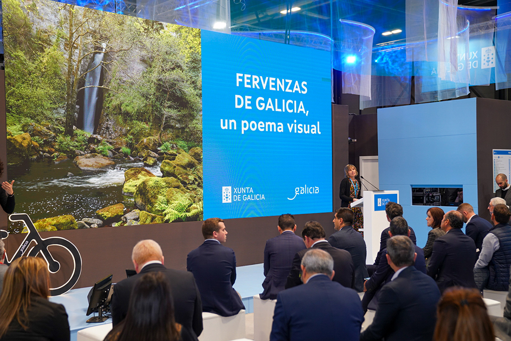 La directora de Turismo de Galicia, Nava Castro, participó esta tarde en la presentación del catálogo Fervenzas de Galicia, Poema Visual en el stand de Galicia en Fitur, un proyecto fruto del trabajo de dos años en los que se reúnen y clasifican saltos de agua distribuidos por toda la geografía gallega.