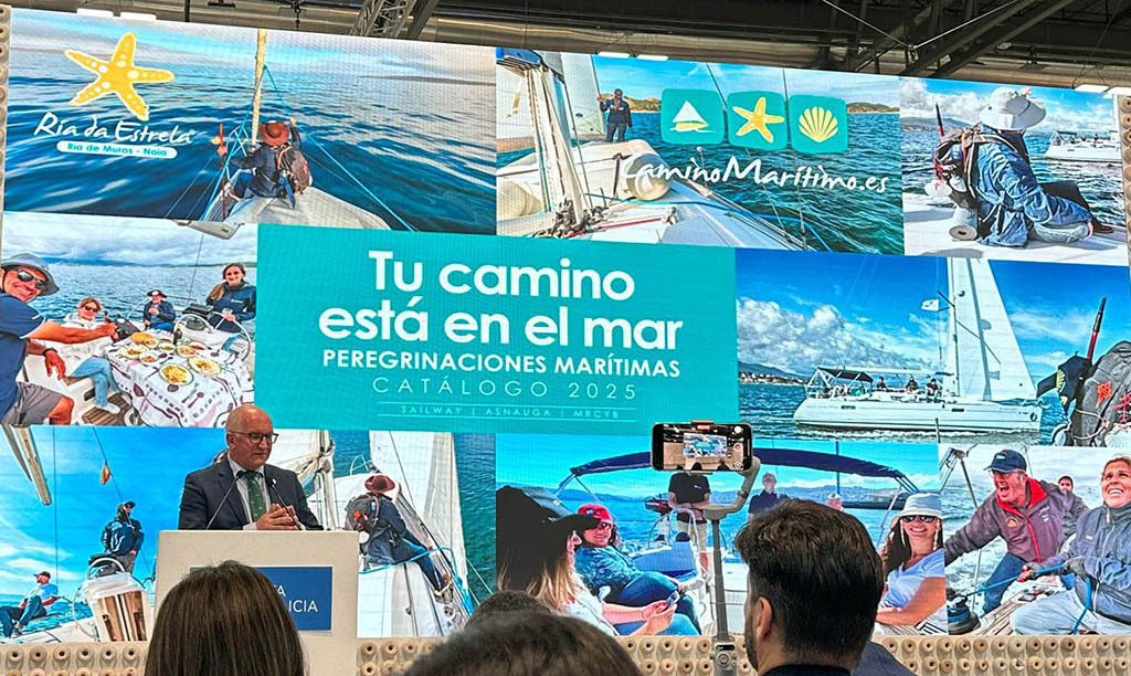 Laura Moya destacó el valor del mar como "fuente de inspiración, tradición y salud" y presentó el Camino Marítimo a Santiago como una experiencia única que ofrece la posibilidad de realizar el camino por mar en grupo o con barco propio.