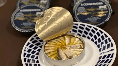 Xouba de Rianxo-Pesca Artesanal O Xeito con aceite de oliva y láminas de oro 24K. El producto se eleva a una esfera superior. Por primera vez, se incorpora en la conserva de pescado oro de…