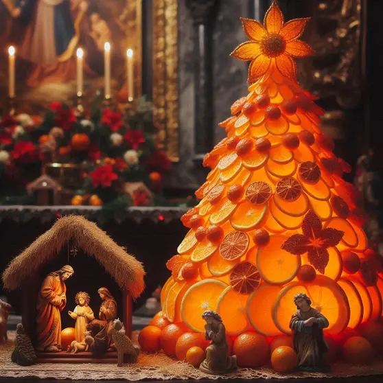 Mi árbol, este año es un naranjo, significa una plegaria abierta a todos los dioses y creencias, una súplica por la paz y la justicia, está colocado junto al Belén, pues este representa mi cultura, mi religión católica, y mis tradiciones familiares.