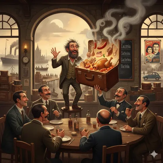 Lo contaba en las tertulias aquel ex barbero ambulante, como si fuese el guion de una película de Cesáreo González o un relato de Álvaro Cunqueiro, el mismo que, según me narró Manolo Cores "Chocolate", dividía al cerdo en regiones romanas: "Laconia, Cacheira, Tocinia...". Aquella "valija diplomática" era la prueba de que en Vigo no solo se fabricaban maletas para contener mundos; también llegaban para abrirlos y compartirlos en torno a una mesa.