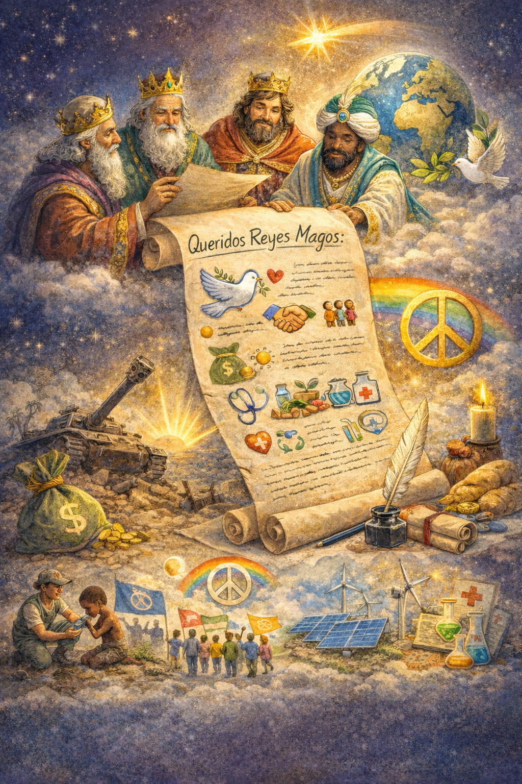 Ante la ausencia de líderes en un mundo sin alma y con crisis de valores, en el que persisten los conflictos bélicos en diversos lugares, la emergencia climática, la pobreza, etc., estamos en una encrucijada de la que es muy difícil salir, de ahí que me gustaría haceros algunas peticiones para el 2026, con la esperanza de que sean atendidas por el bien de la Humanidad.